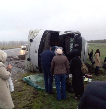 На трассе Набережные Челны - Казань рейсовый автобус завалился набок