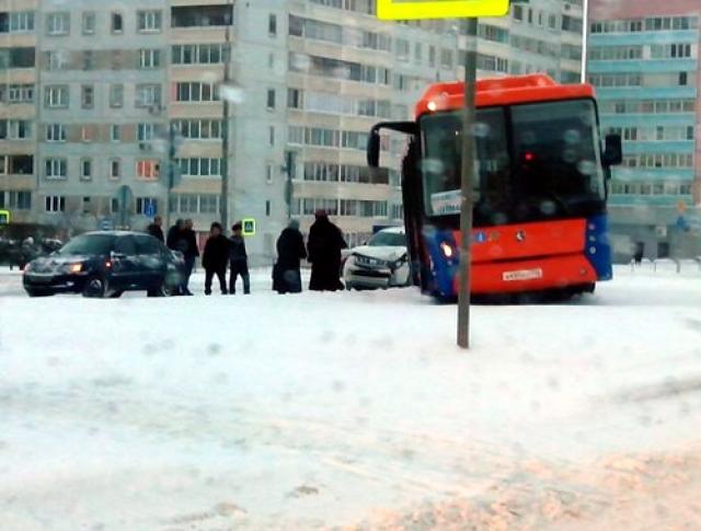 Новый автобус "Нефаз" попал в аварию на перекрестке Московский - Дружба народов