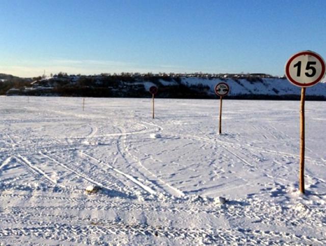 Здесь установлены необходимые дорожные знаки и шлагбаумы. На съездах имеются прожекторы, а на обоих берегах пункты обогрева. Скорость движения по льду автомобилей должна составлять 15-20 км/час, а дистанция между ними - от 50 до 100 метров. Запрещено останавливаться, двигаться рывками, разворачиваться и обгонять. Двери машин должны быть немного приоткрыты. В туман или пургу ездить по льду не рекомендуется.