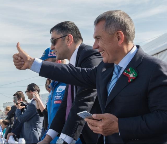 В Казани у стен Кремля состоялось автошоу "Kazan City Racing", которое посетил президент РТ. Он сфотографировался вместе с членами команды "КАМАЗ-мастер", а затем отправился в ВИП-ложу для того, чтобы посмотреть мастерство пилотов Айрата Мардеева и Эдуарда Николаева в деле. Дрифт на грузовиках президент заснял на телефон и выложил на своей странице в соцсети.
