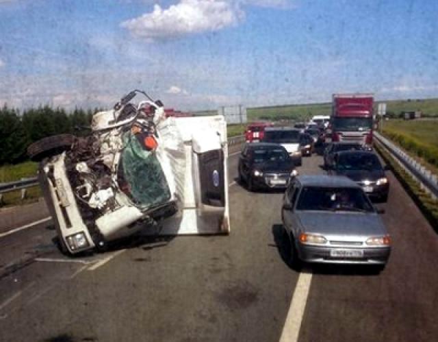 Вчера после полудня на 990-м километре автотрассы М-7 водитель большегруза "Исудзу" отвлекся от дороги и на полном ходу врезался в припаркованную на обочине фуру "МАН". Японский грузовик опрокинулся на бок, перегородив две полосы движения. Из-за этого возникла километровая автомобильная пробка по направлению в Казань. Водитель "МАНа" к моменту ДТП уже покинул кабину своего большегруза. Испугом отделался и водитель "Исудзу". К вчеру разбитые машины убрали и движение на трассе было восстановлено.