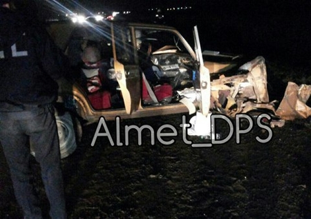 В результате ДТП водитель легковушки скончался на месте аварии. Двое его пассажиров доставлены в медсанчасть ОАО "Татнефть" города Альметьевска. Наиболее пострадал 16-летний парень. Ему сделали трепанацию черепа и удалили часть кишечника. В данный момент он находится в искусственной коме.