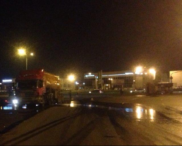 В Набережных Челна сегодня ночью на Орловском кольце первой автодороги произошло ДТП, которое грозило обернуться пожаром. Самосвал во время движения по неизвестной пока причине завалился на бок. Опрокидываясь, грузовик задел едущий рядом бензовоз. В результате столкновения в цистерне образовалась пробоина и топливо хлынуло на асфальт. По сообщению свидетеля происшествия Тимура Шамсутдинова, водитель бензовоза попытался заткнуть пробоину. И ему это отчасти удалось. Прибывшие оперативные службы перекрыли дорогу и пожарными гидрантами залили водой разлитый на дороге бензин. Возгорания удалось избежать. Жертв нет.