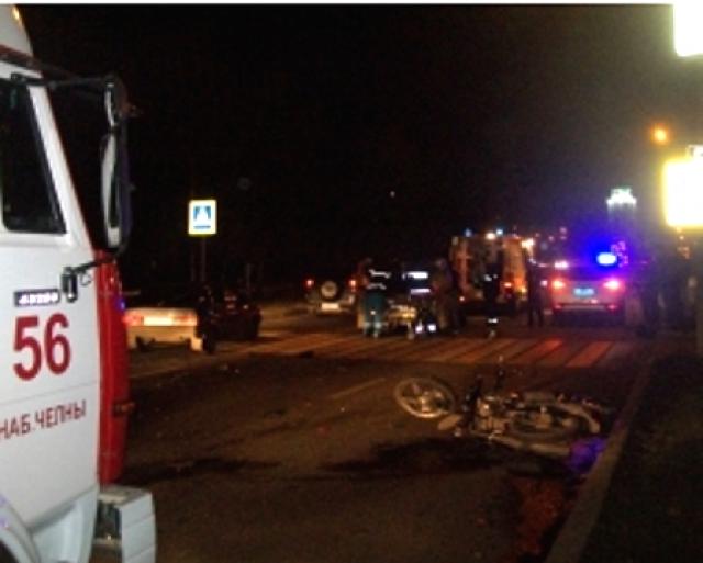 В этот же день в 18:10 на проспекте Хасана Туфана напротив мэрии 35-летний мужчина без прав на мотоцикле без номеров разогнался и врезался в остановившийся перед пешеходным переходом автомобиль "Хундай". От столкновения мотоциклист перелетел через иномарку и упал на крышу также остановившейся перед ней "Калины". После этого акробатического "трюка" мотоциклист получил перелом колена и закрытую черепно-мозговую травму. Он был в мотошлеме.