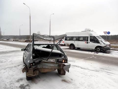 1 декабря свежевыпавший снег и невнимательность водителей стали причиной столкновения двух автомобилей. Очередное ДТП произошло на пересечении проспектов Вахитова и Чулман. В 12 часу дня микроавтобус "Форд Транзит", следовавший по маршруту №42, догнал и разворотил корму легкового автомобиля "ВАЗ-2114".