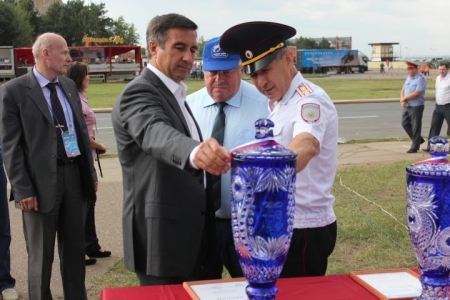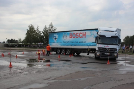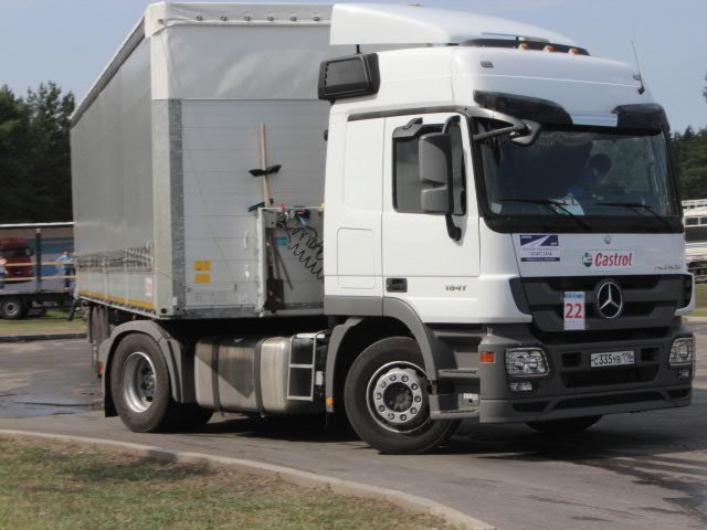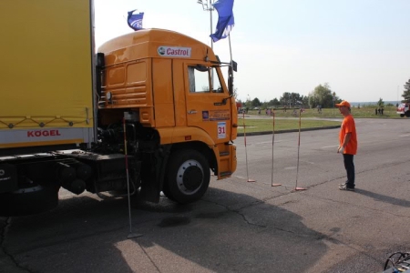 Сегодня в Набережных Челнах состоялся конкурс мастерства водителей большегрузов на Кубок Мэра. Сам мэр присутствовал только на открытии, с удовольствием погладив чемпионский кубок. На старт вышли 44 участника из 22 команд. Большинство из них представляли Татарстан, но были участники и из других регионов России, а также водители из Белоруссии. Белорусы, кстати, выступали не на МАЗе, а на грузовике нидерландской фирмы DAF. Конкурсанты должны были выполнить несколько фигур вождения – параллельная парковка, задний и передний заезд в бокс, круг, змейка, тоннель и финиш. От участников требовалось пройти трассу не только быстро, но и, прежде всего, безошибочно. За каждый сбитый знак начислялись штрафные секунды. Больше всего штрафов водители собрали на параллельной парковке, некоторые вовсе не смогли выполнить данную фигуру. Некоторые водители также отмечали сложность заезда в боксы. Погода внесла свои коррективы в ход соревнований. Те, кому пришлось выйти на трек во время дождя, вынуждены были ехать гораздо осторожнее, что отразилось на их времени.