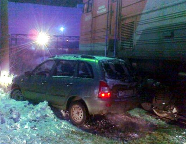 В Нижнекамском районе тепловоз столкнулся с автомобилем "Лада Калина"