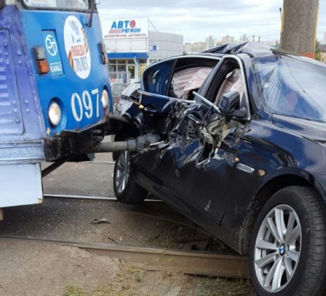 В поселке Орловка автомобиль BMW попал под трамвай