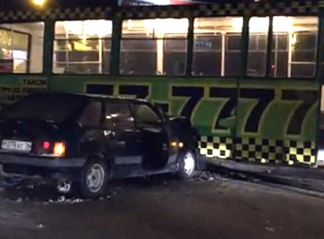 В поселке ЗЯБ водитель автомобиля "ВАЗ-2114" столкнулся с трамваем. Два человека пострадали