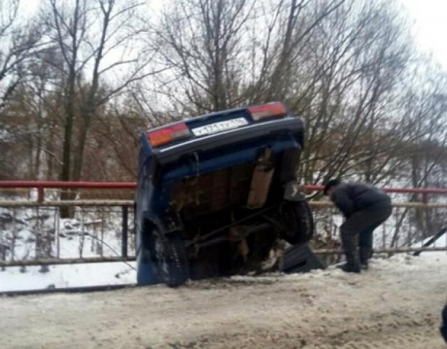 В Татарстане автомобиль ВАЗ-2107 пробил ограждение моста и завис над обрывом