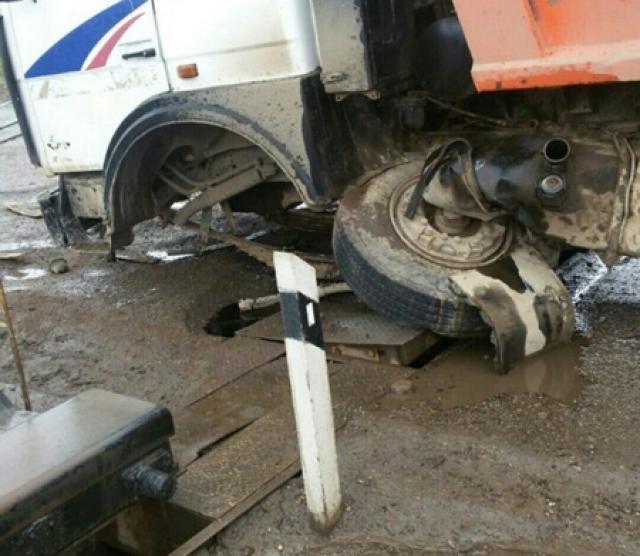 В Татарстане на железнодорожном переезде у грузовика вырвало колеса