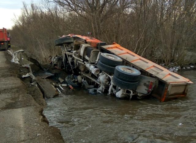 В Татарстане при проезде через дамбу грузовик "КАМАЗ" опрокинулся в реку
