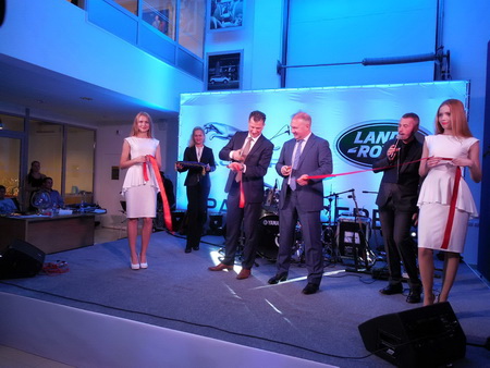На торжественное открытие, по некоторой информации было разослано до 400 приглашений потенциальным клиентам - естественно, людям небедным. Ведь стартовая цена, например, Land Rover от 1 миллиона 400 тысяч рублей, а дальше - дороже. Собралось на презентацию около 200 человек. Музыка, торжественные речи, разрезание ленточки, представление нового автомобиля, который поступит в продажу в 2015 году - все, как положено. Но, безусловно, в центре внимания была приезжая "звезда" - ягуар по кличке Кеша, которого привезли из московского цирка. Кстати, он снимался в рекламе прохладительного напитка "Швепс", привык к людскому вниманию и позволял с собой сфотографироваться всем желающим.