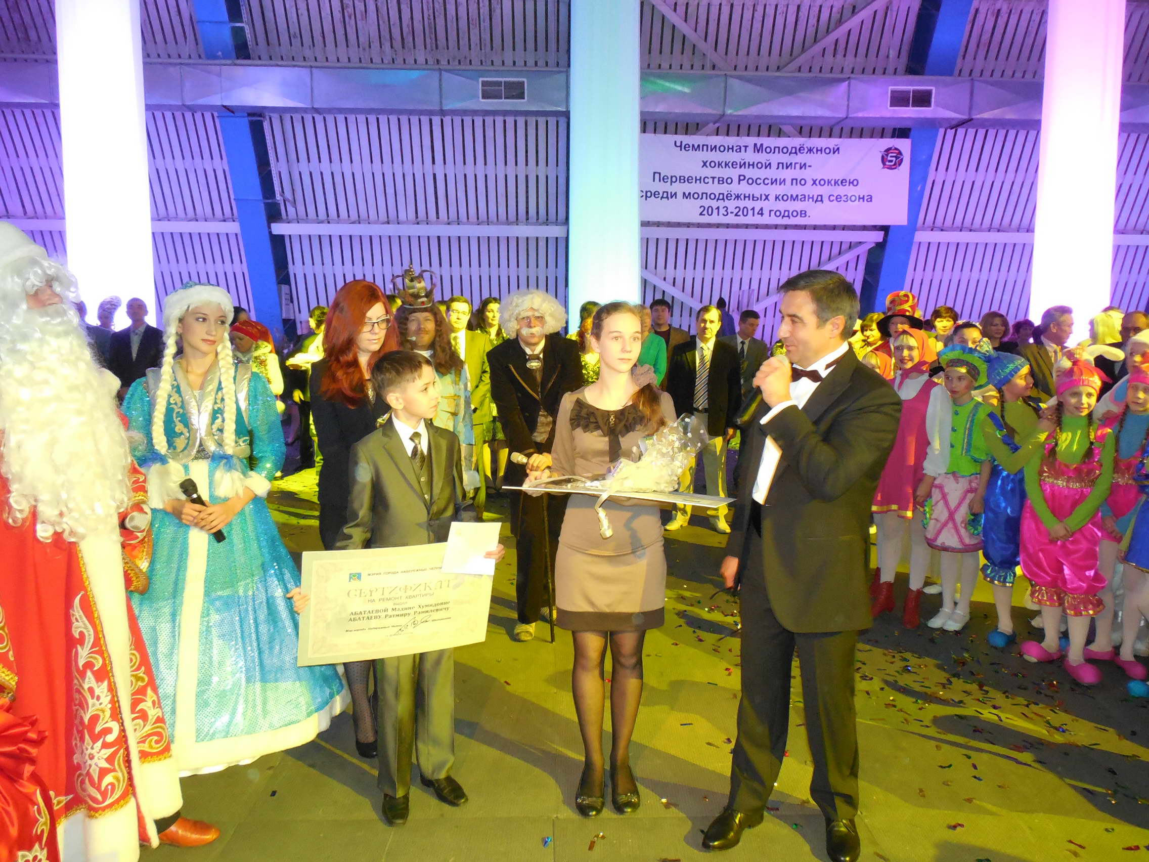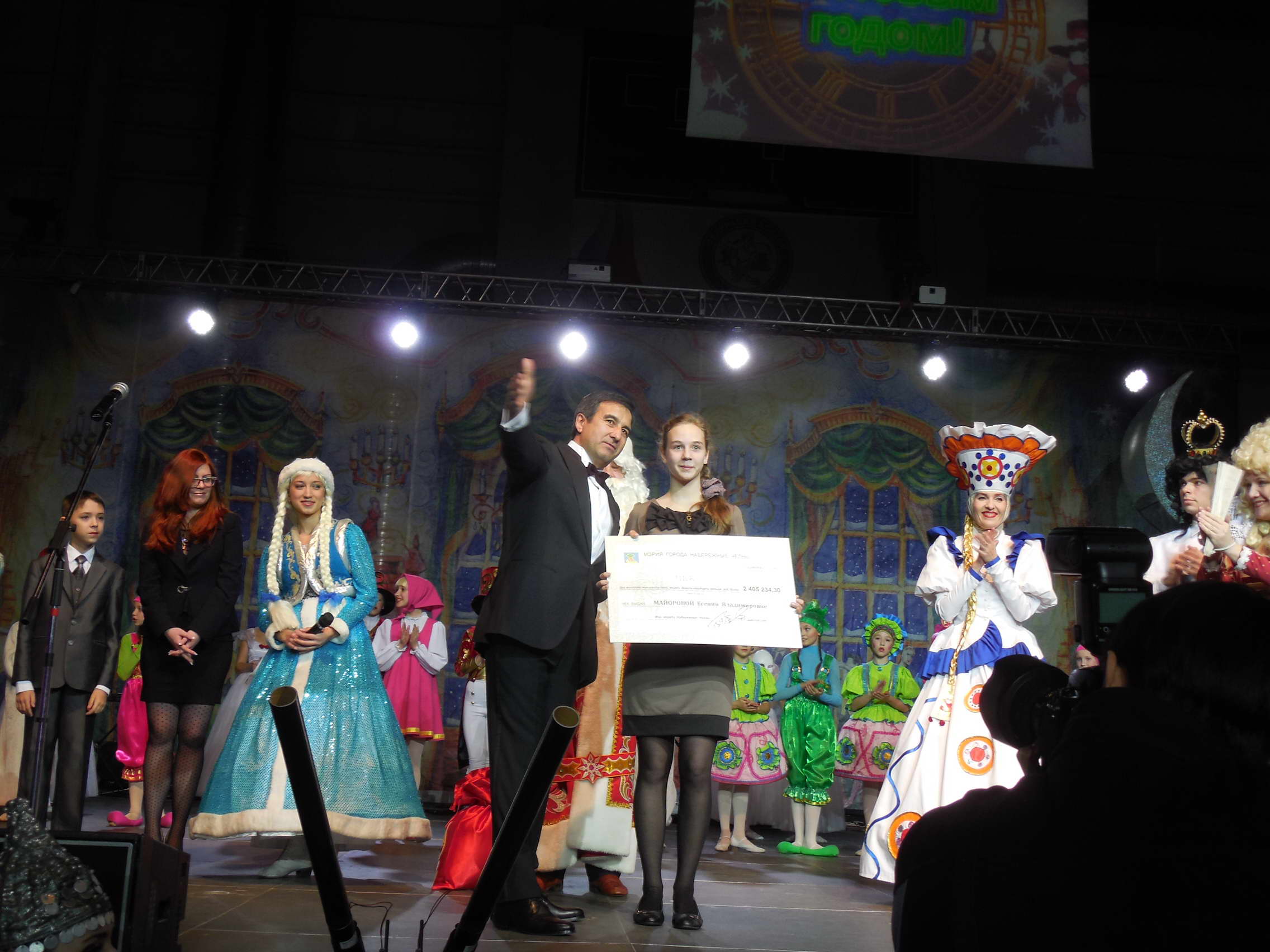 Наконец, на сцене началось театрализованное представление. Как и было задумано по сценарию представления, в конце сказки на сцену поднялся мэр, Василь Шайхразиев, и объявил присутствующим, что он всех пригласил на сегодняшний вечер, чтобы помочь трем сиротам.
