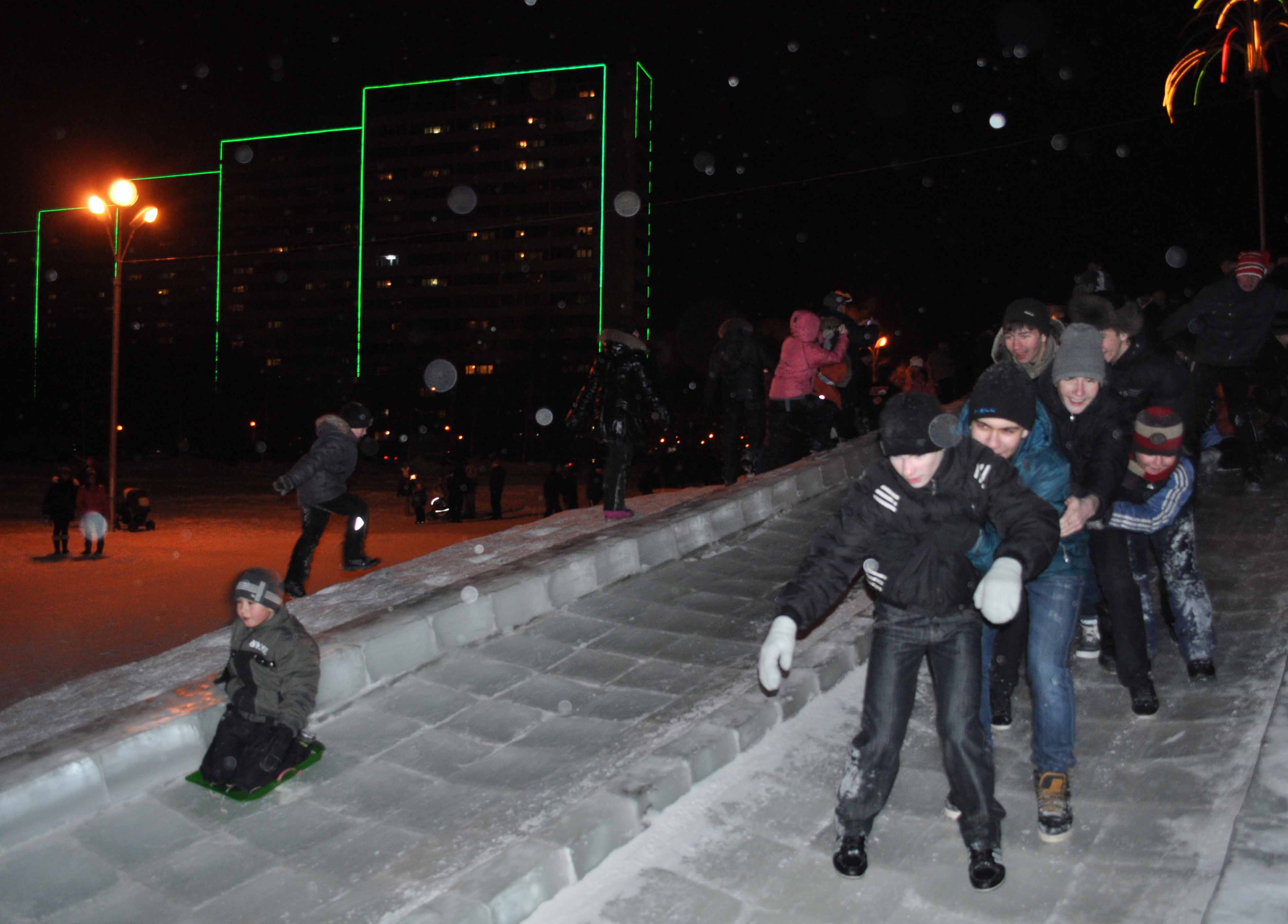 Из неофициальных деталей отметим: в Новогоднюю ночь у молодых челнинок были актуальны капроновые колготки, фотосессии у ледяного дракона и шампанское "из горла". Но пили его, следуя городской концепции, культурно и по горке проезжали без принятого когда-то мата - падали тихо и красиво.
