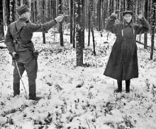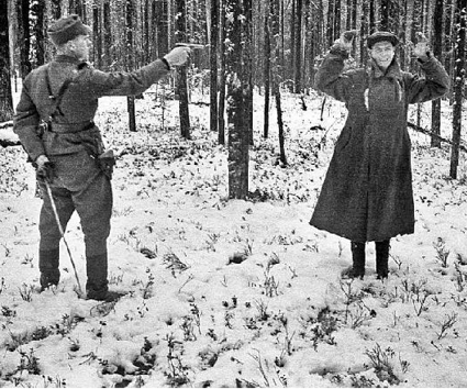 На снимке: Расстрел финами советского диверсанта. За секунду до выстрела. Вглядитесь в него - он смеется врагам в лицо.
