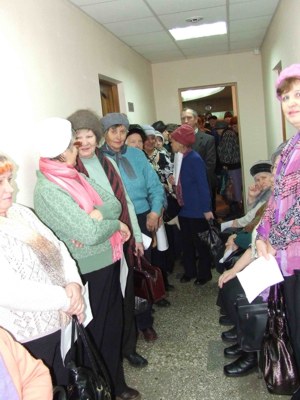 В театре «Мастеровые» 11 ноября было не протолкнуться, людская толпа плотно заполнила и первый, и второй этажи. Челнинцы пришли сюда, узнав из объявления, что здесь бесплатно будут делать анализ крови на сахар и холестерин. Но всех ждал «сюрприз» - трехчасовое стояние в очереди. «Обязательно напишите про это безобразие, - позвонили в редакцию «Челны ЛТД» возмущенные люди. - Жарко, дышать нечем, большинству негде сесть". Многие предположили, что организатор мероприятия - «Единая Россия», потому что всем входящим «молодогвардейцы» вручали календарики этой партии.