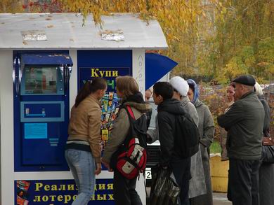 Пока идет борьба с игровыми заведениями, в Набережных Челнах появилось новые игровые автоматы. Совершенно легальные и собирающие толпы людей – экспресс-лотереи. Один такой автомат стоит около магазина «Славный» в 41-м комплексе. Принцип тот же – засовываешь в купюроприемник денежку, только вместо выигрышной комбинации в автомате цветные «фантики»-лотерейки. Жмешь на кнопку и получаешь результат. Чаще отрицательный. Пожилая горожанка в таком лотерейном автомате на наших глазах спустила 1 тысячу рублей. Потом выиграла 200. И, вздохнув, пошла в магазин, куда сначала и направлялась.