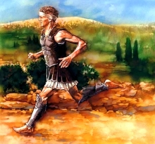 * В 490 году до н.э. греческий воин Фидиппид пробежал от города Марафон до Афин, принеся весть о победе греков над персами. Как лучший бегун, незадолго до битвы Фидиппид был направлен в Спарту с просьбой прислать войско на помощь в случае поражения. Выбежав утром, он менее чем за сутки одолел бегом по горным дорогам 1240 стадиев (238 км), достигнув цели «рано на заре следующего дня», сообщает историк Геродот. Затем, не получив вразумительного ответа, бегом незамедлительно вернулся обратно. Грекам стало ясно, что помощи не будет и проигрывать битву нельзя. Не имея достаточного времени на отдых, Фидиппид, как и все мужчины, принял участие в жестокой 6-часовой битве с 10-кратно превосходящим по численности противником и сразу после победы раненый и обессиленный побежал в Афины, где женщины и дети со страхом ожидали решения своей участи. Право принести весть о победе считалось у греков почётной наградой, достойной героев, и мужественный Фидиппид заслуженно потребовал это право. Весть в Афины несли несколько бегунов, но не привыкший проигрывать Фидиппид и в тот раз приложил все силы, чтобы быть первым. И это ему удалось. Добежав до Афин без остановок, он успел крикнуть «Ликуйте, афиняне, мы победили!» и упал замертво... Когда в 1896 году в Афинах проходили первые современные Олимпийские игры, в честь Фидиппида был устроен забег между Марафоном и Афинами. С тех пор марафон стал классической дистанцией, и соревнования по марафонскому бегу стали одним из самых популярных видов лёгкой атлетики.
