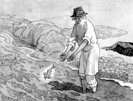 * В 1835 году вышла в свет «Сказка о рыбаке и рыбке» А.C. Пушкина. Считается, что сюжет сказки основан на померанской сказке «О рыбаке и его жене» из сборника братьев Гримм, с которой имеет очень близкие совпадения, а также перекликается с русской народной сказкой «Жадная старуха» (где вместо рыбки выступает волшебное дерево). В конце сказки братьев Гримм старуха хочет стать римским папой (намёк на папессу Иоанну). В первой рукописной редакции сказки у Пушкина старуха сидела на Вавилонской башне, а на ней была папская тиара.