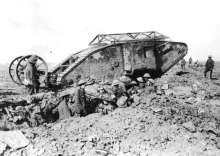 * В 1916 году состоялось первое в истории мировых войн применение танков в боевых действиях. Англичане на реке Сомме бросили против немцев 49 танков модели Mark I, выпускавшийся в двух модификациях: «самка» (Female) - только с пулемётным вооружением и «самец» (Male) - с пулемётом и двумя пушками. В ходе боя выяснилось, что конструкция танка недостаточно отработана — из 49 машин на исходные позиции выдвинулось только 32 (17 танков вышли из строя из-за неполадок), а из этих тридцати двух, начавших атаку, 5 застряло в болоте и 9 вышли из строя по техническим причинам. Тем не менее, даже оставшиеся 18 танков смогли продвинуться вглубь обороны на 5 км, причём потери англичан в этой наступательной операции оказались в 20 раз меньше обычных.