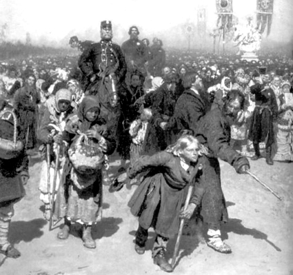 * В 1717 году Петр I издал Указ о запрещении появления на улицах нищих. Для борьбы с нищенством решено было провести перепись всех бедных, распределив призреваемых между «праздно живущими» монахами. Система государственного призрения, сформулированная Петром, сводилась к следующему: признание за государством права создавать в области призрения обязательные нормы и требовать их исполнения; полное осуждение нищенства и запрещение его; воспрещение раздачи милостыни профессиональным нищим; разбор и расследование дела по каждому нищему. Еще в 1691 году Петр приказал высылать из Москвы пришлых нищих, особенно тех, кто «работает» под увечных: «А буде те люди... впредь объявятся... в том же нищенском образе и притворном лукавстве... учинить жестокое наказание, бить кнутом и ссылать в ссылку в дальние сибирские города».
