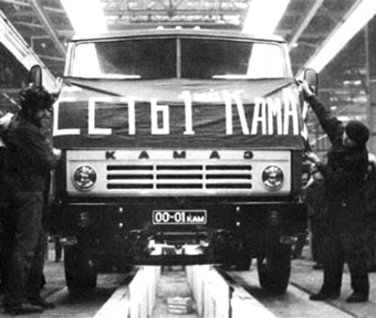 * В 1976 году министр автомобильной промышленности СССР В.Н. Поляков утвердил акт о вводе в эксплуатацию первой очереди Камского комплекса заводов по производству большегрузов - "КАМАЗа". Утверждённый на год план (15 000 автомобилей) был выполнен досрочно - в октябре 1977 года к 60-летию Великой Октябрьской революции - и перевыполнен за год почти на треть (22 000 автомобилей).