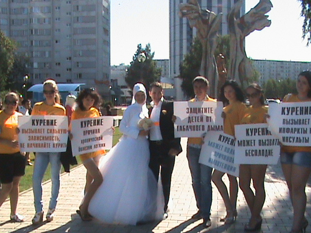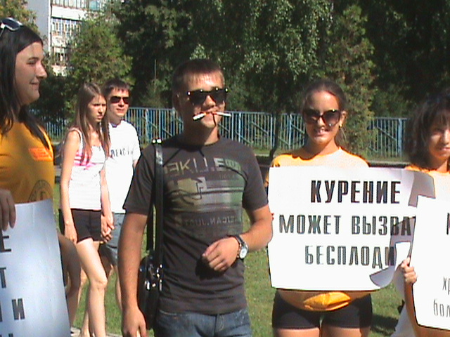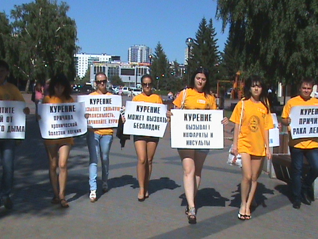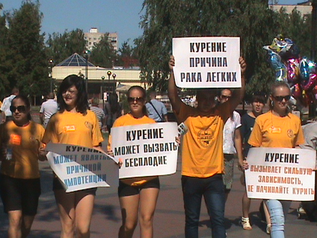 Вначале раздавали наклейки прохожим с надписями «Я не пью» и «Я не курю». Большинство людей отнеслось с воодушевлением к акции, охотно клея на себя значки. Хотя находились и те кто скептически отнеслись к данной затее, один из прохожих заметил: "Мой дед всю жизнь курил, и ничего". Закончилось все шествием с плакатами, призывающими к отказу от курения. Сигареты обменивались на конфеты. К концу акции кулек со сладостями был уже почти пуст.