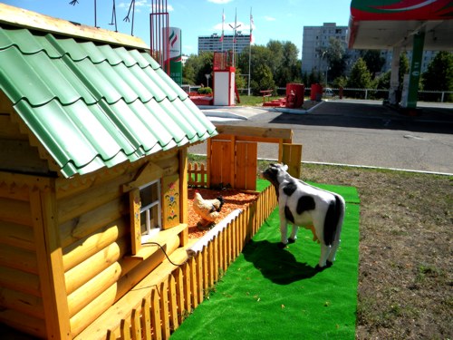 Вот такое "подворье" можно увидеть на одной из автозаправок Набережных Челнов, которое является результатом борьбы за звание «Лучшей АЗС» среди филиалов ООО «Татнефть – АЗС Центр». Кстати, эта АЗС №18, находящаяся по проспекту Мира, заняла второе место.
