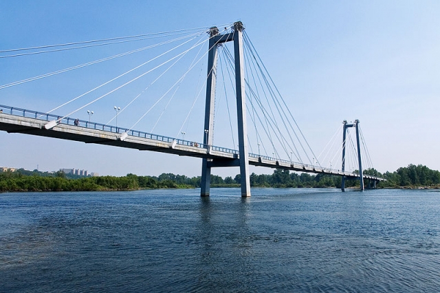 Новый мост, соединяющий микрорайон Бумажников и Элеваторную гору, планируют сдать ко Дню коренного челнинца (последняя пятница июля). Если не задержат иностранцы. Дело в том, что это будет не обычный висячий мост, а вантовый: пилоны соединяются с дорожным полотном прямолинейными стальными тросами — вантами. (В отличие от висячих мостов, где дорожное полотно поддерживается вертикальными тросами, прикреплёнными к протянутым по всей длине моста основным несущим тросам).