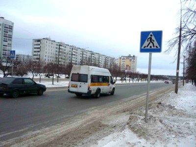 А на отремонтированном участке проспекта Мира между автобусными остановками "Шишкинский проезд" и "Уют" установили новый знак "Пешеходный переход". На первый взгляд все нормально. Но приглядишься, и видно, что человечек в треугольнике шагает не в ту сторону.