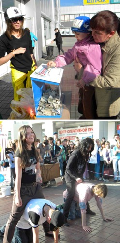 Просить «милостыню» можно по-всякому. Ребята из Технического колледжа, члены добровольческого центра «Волонтер» деньги просят весело и непринужденно - с конкурсами и песнями.