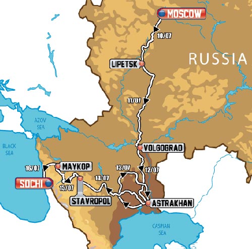 За семь дней участники преодолеют маршрут длиной около 4 тысяч километров, проложенный через Липецк, Волгоград, Астрахань, Ставрополь и Майкоп. Протяженность специальных участков около 2,5 тысячи километров. Самый длинный из них составит 690 км, а самый короткий, финишный, всего 17 км. Около трети дистанции (800 км) приходится на песчаные участки, что существенно усложнит и сделает ралли более интересным и непредсказуемым. А июльская жара, когда максимальные температуры на юге страны могут зашкаливать за 40 градусов, сделает эту гонку сопоставимой с африканскими и латиноамериканскими «Дакарами».