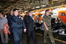 Гости посетили главный автосборочный конвейер Автомобильного завода, где смогли воочию познакомиться с «финишным» этапом производства автомобилей, сообщает официальный сайт ОАО. Им была продемонстрирована работа конвейера сборки кабин, в Научно-техническом центре – выставка автотехники, производимой Камским автогигантом. Продукция камского автогиганта пользуется большим спросом у представителей силовых структур России. Специально для них на «КАМАЗе» разработано несколько перспективных спецавтомобилей для выполнения сложных задач по защите мирных граждан и для наведения общественного порядка.