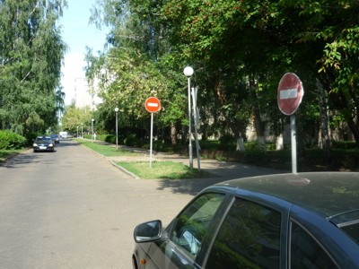 Вопрос в том, почему "кирпич" установлен, а машины все равно едут во встречном направлении? Ответ простой. Во-первых, знак стоит далеко после поворота; во-вторых, под сенью деревьев, из-за листвы которых его не сразу заметишь. Поэтому-то многие водители, не видя знака, заезжают на этот участок дороги, потом упираются в "кирпич". Останавливаются, решая что делать, а деваться уже некуда, так как в час пик ни развернуться, ни проехать задним ходом уже невозможно. Поэтому там периодически собираются пробки и создаются аварийные ситуации".