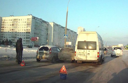 А в этом случае еще следует разобраться, то ли маршрутка зарвалась в "погоне за пассажирами", то ли она пыталась увернуться от подрезавшего ее джипа. Как бы там ни было, "объятия" этим водителям из Набережных Челнов избежать не удалось.