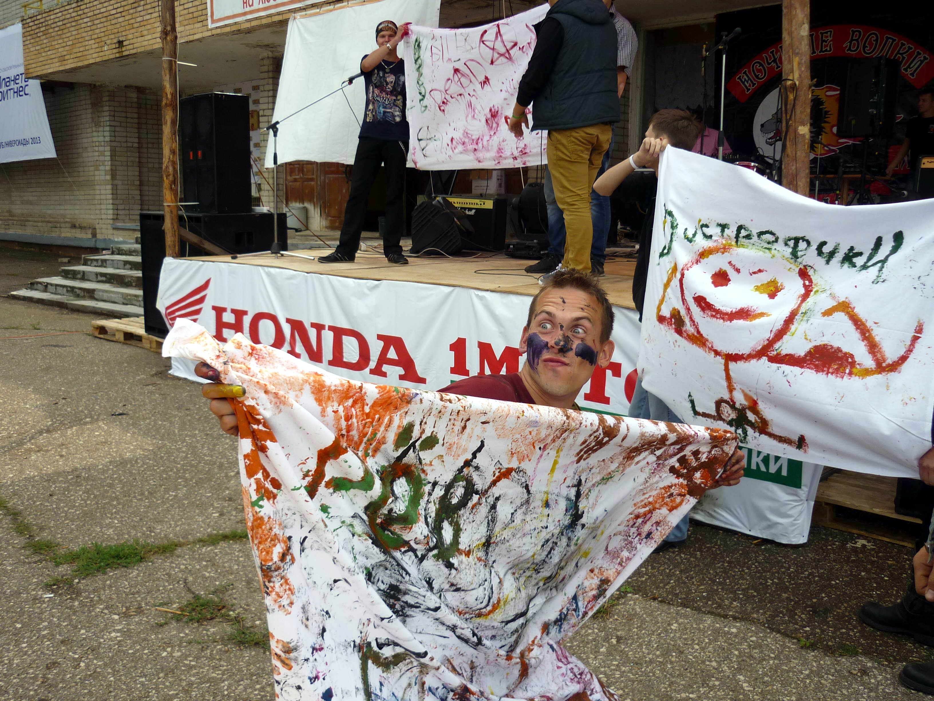- Это постановка, которую по традиции устраивает наш клуб. Но основная кульмминация с салютом будут сегодня. Это нужно видеть. Она будет продолжаться семь минут и в ней будет задействовано свыше 40 человек. А сегодня у нас с утра проходят различные конкурсы, в том числе и силовые, которые проводит "Планета Фитнес". Пройдут рыцарские бои в средневековых доспехах. Затем начнутся традиционные для нашего фестиваля конкурсы по номнациям: "Кастом" - среди мотоциклов, собранных вручную; "Рев мотора" - на самый громкий и красивый выхлоп и "Аэрография".