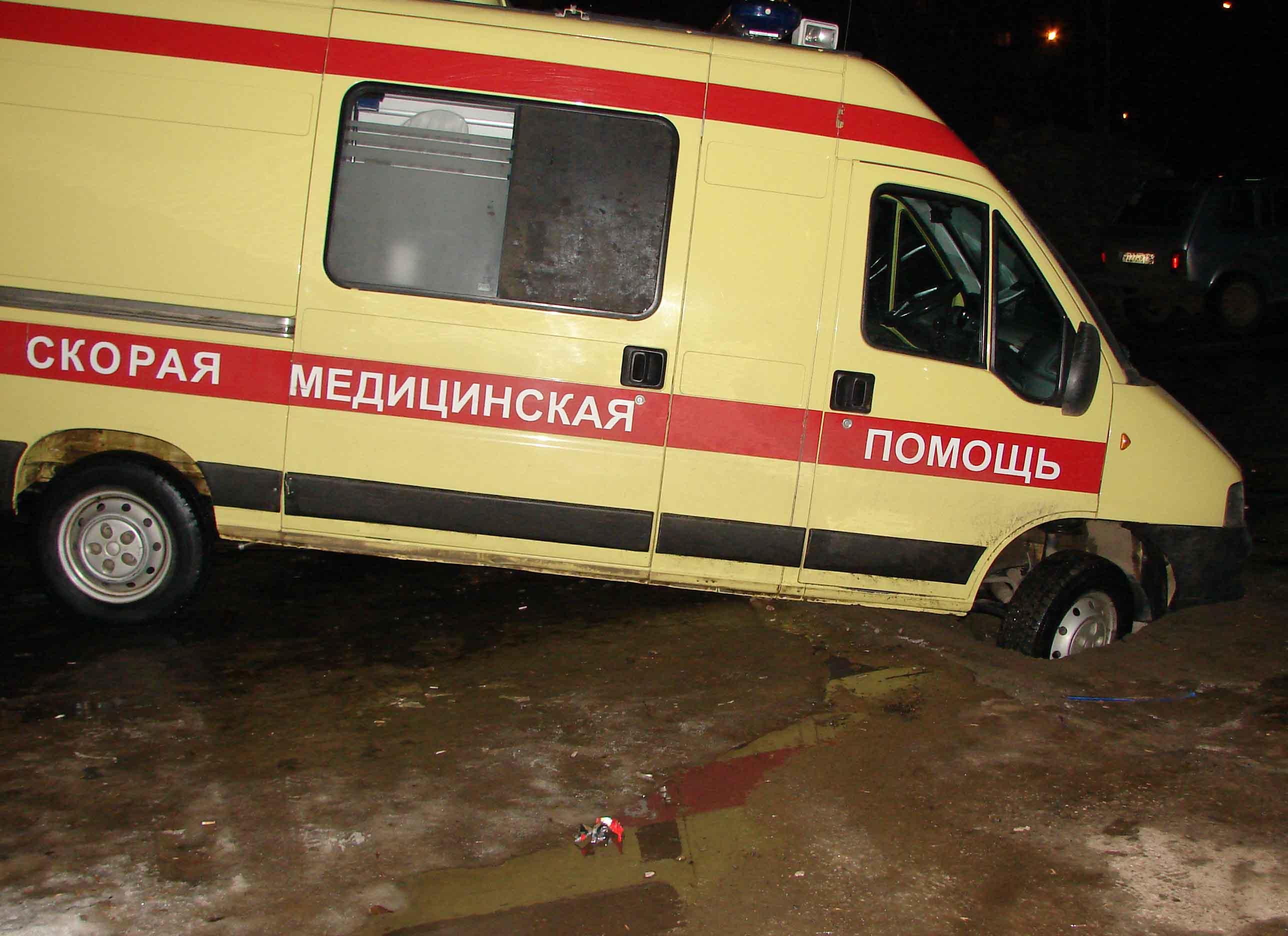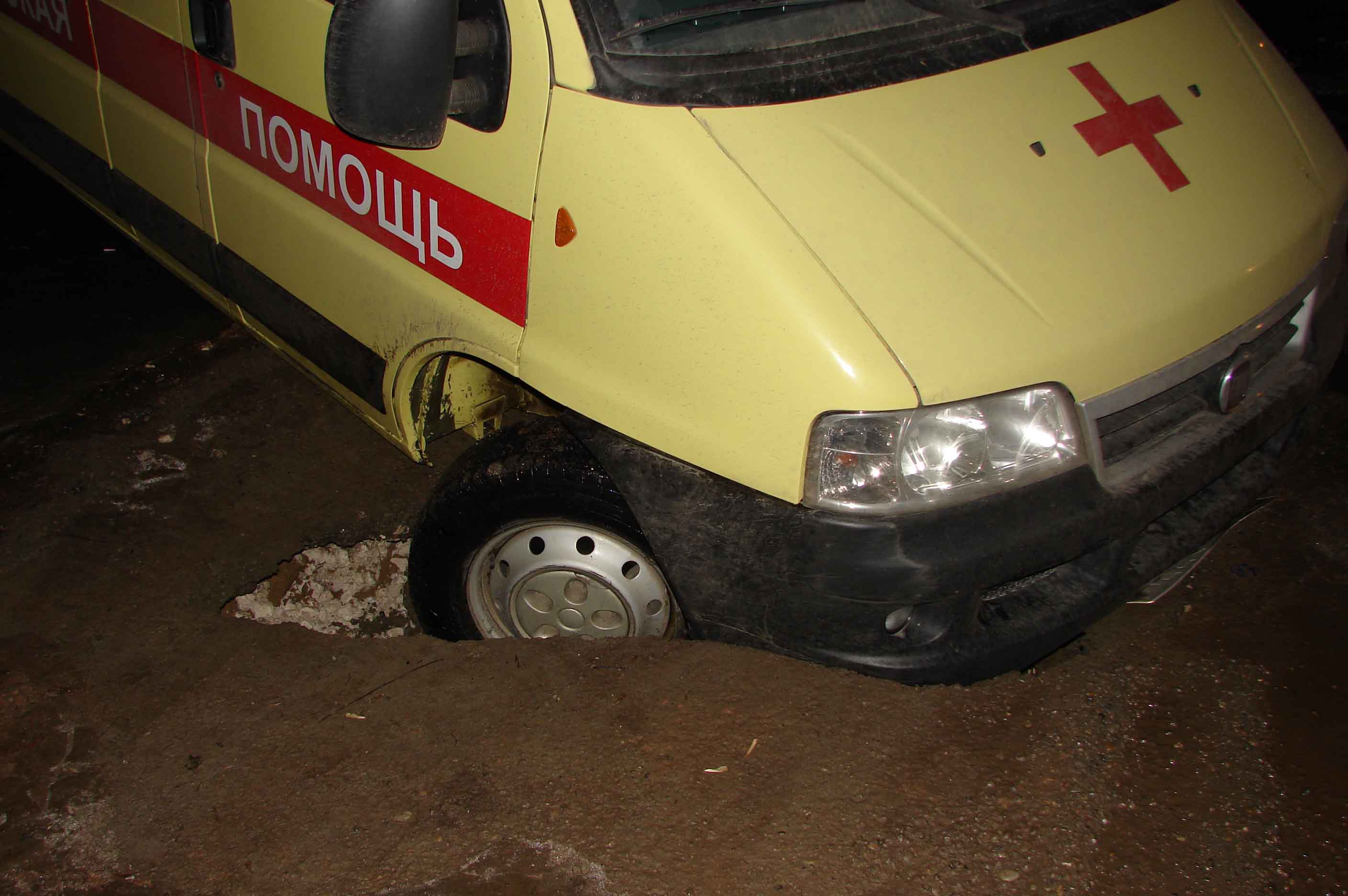 ЧП случилось на пустом месте около дома 41/23. Несколько дней назад здесь перекрывали дорогу и в очередной раз копали... Медики двигались за легковушкой. В следующий момент передние колеса их машины провалились. Масштабные раскопки здесь закончились, котлован засыпали. "Скорая" провалилась рядом - в пустоту, образовавшуюся под асфальтом.