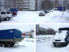 В пункте 12.4 Правил дорожного движения четко сказано, что остановка запрещается (а уж тем более и стоянка) "на пересечении проезжих частей и ближе 5 м от края пересекаемой проезжей части..." Но кто сейчас на это обращает внимание? Машины паркуются где попало и как попало - занимается любое свободное место. Тем более во дворах. Но одно дело, когда в радиусе поворота припаркована легковушка (из-за нее хоть что-то видно), а другое, когда там громоздится тентованная грузовая "Газель". Вот, например, во что упирались взоры водителей, выезжающих 27 марта из двора в 45 комплексе на улицу Бердаха (смотри фото).