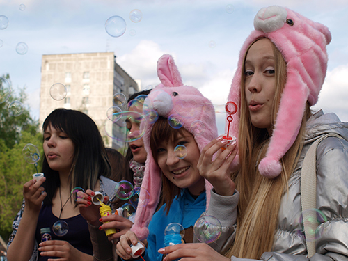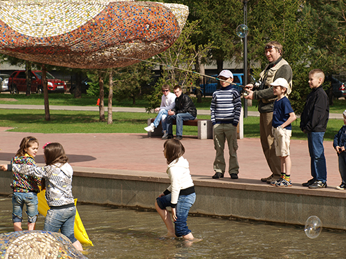 Сегодня состоялся уже традиционный для города «мыльнопузырный» флешмоб. Каждое 1 мая на бульваре Энтузиастов собираются сотни людей и пускают мыльные пузыри. Красивую традицию участники дополнили забавными нарядами, разрисованными лицами и анимешными штучками. Разбавили «мыльнопузырную» массовку ловцы фонтанных рыб: несколько человек закидывали удочки и под крики: «О, пошла, пошла!», лихо рыбачили, вызывая восторг детей.