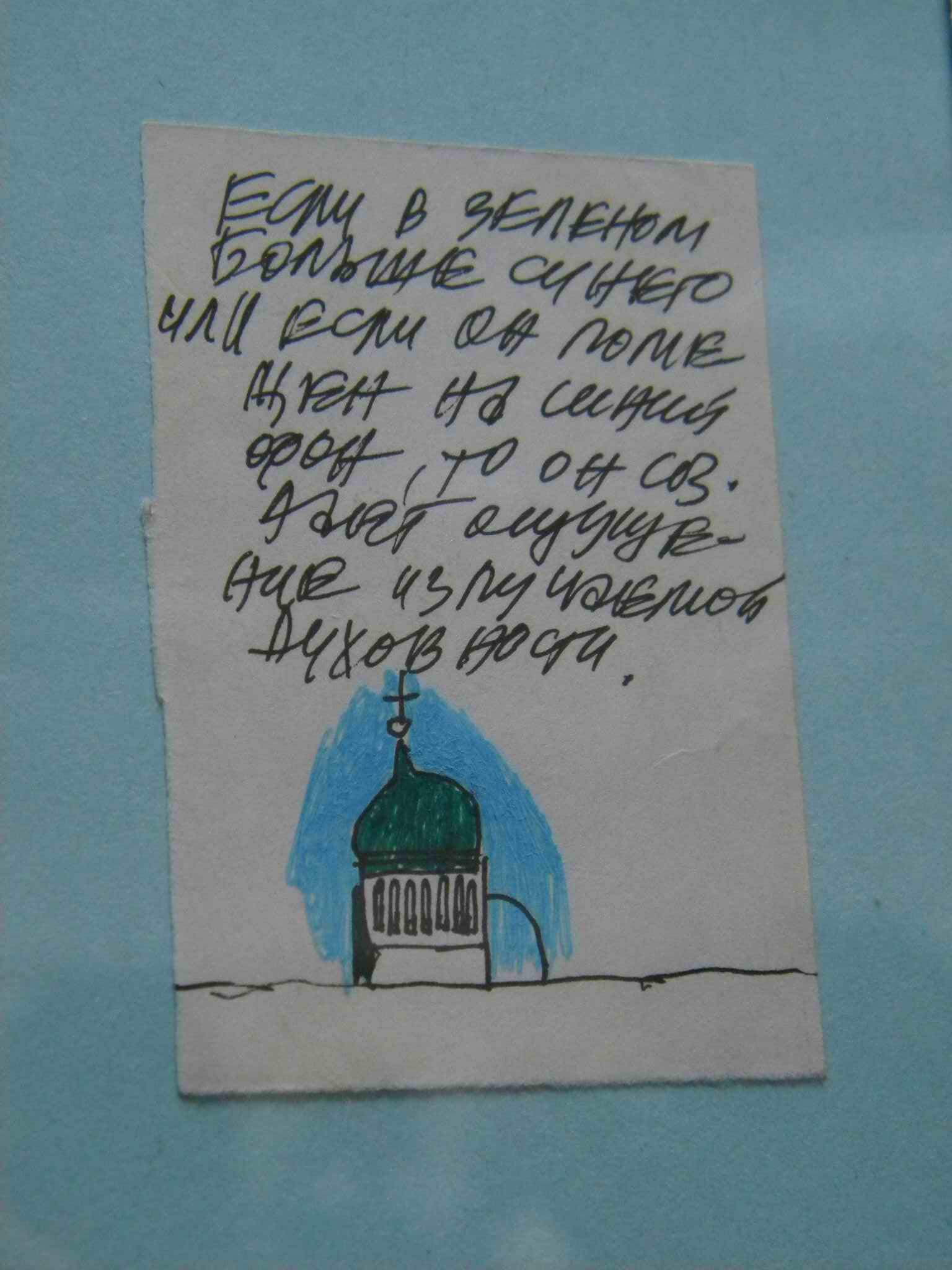 "Если в зеленом больше синего или он положен на синий фон, то создается ощущение излучаемой духовности" - написал Виктор Сынков.