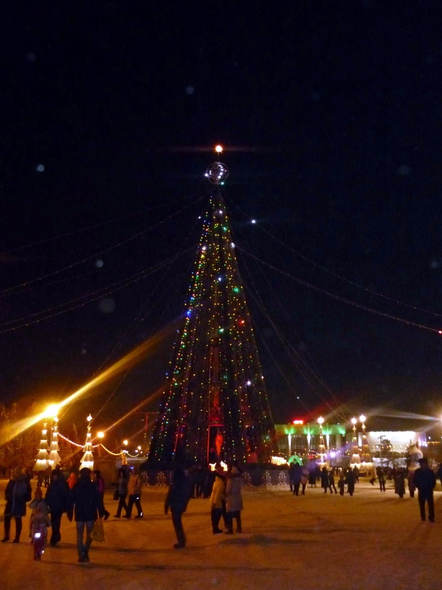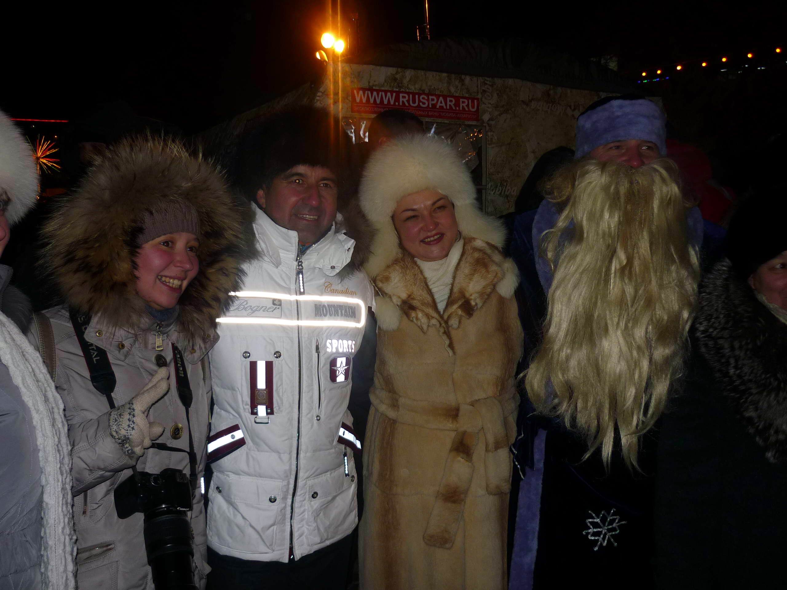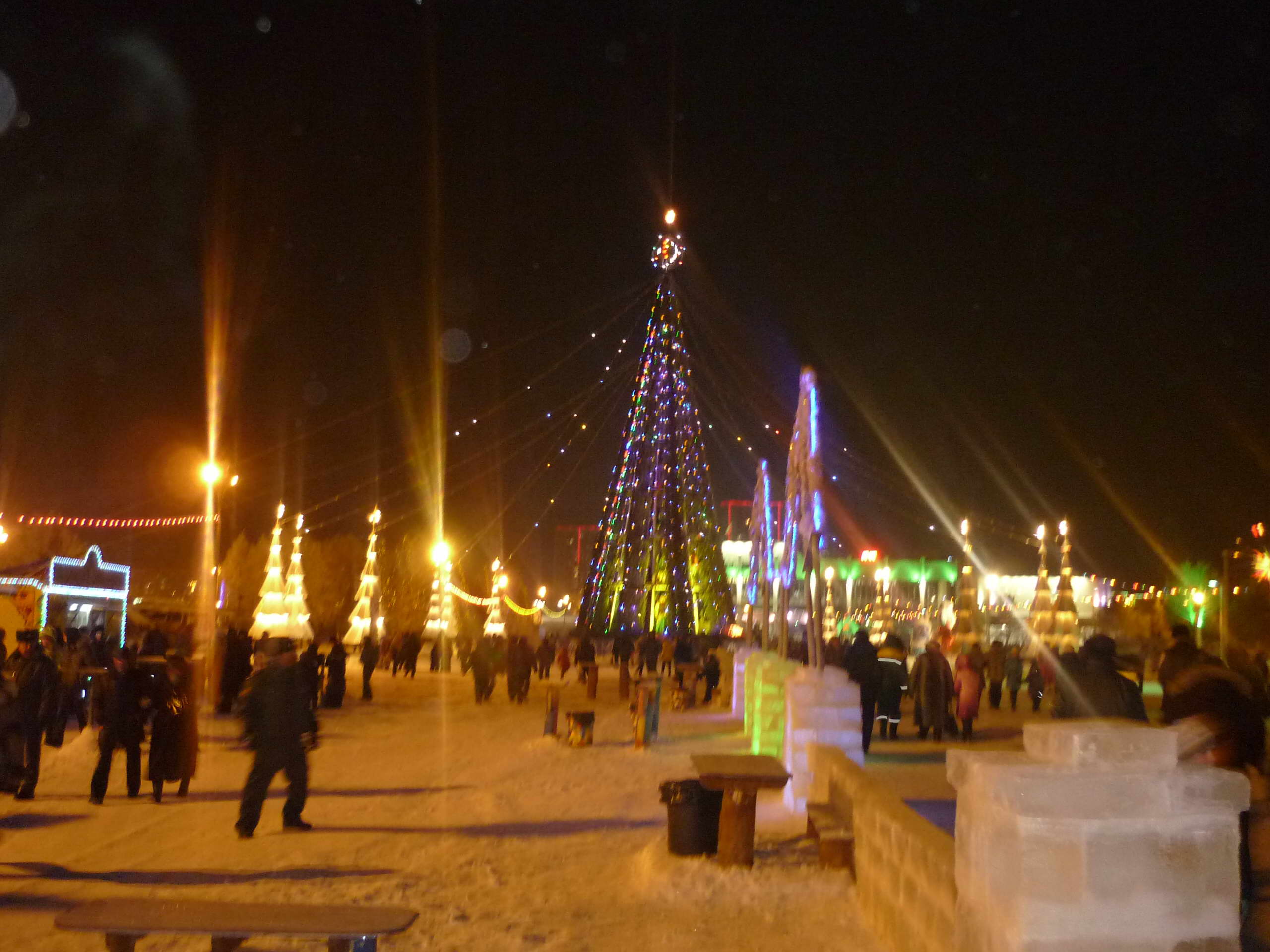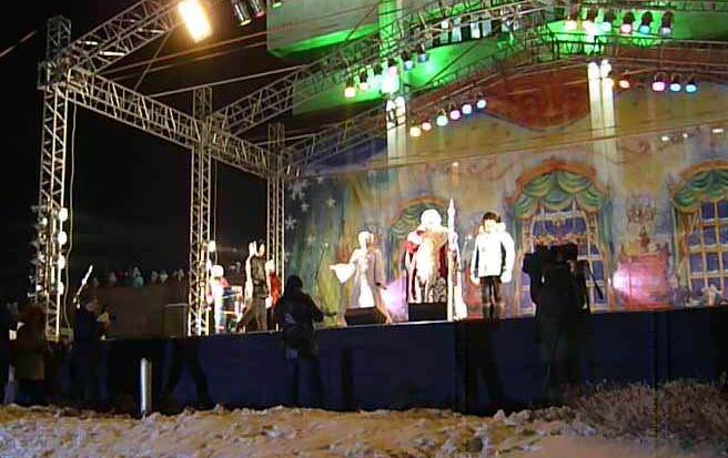 В 17 часов на площади перед мэрией началась церемония открытия центральной новогодней ёлки. Несмотря на 25-градусный мороз, горожан собралось достаточно много. Среди них было немало и детей. Перед собравшимися выступил мэр города. А затем на золотом лимузине прибыли почетные гости из Великого Устюга - Дед Мороз и Снегурочка. Сначала они приняли парад местных Дедов Морозов и Снегурочек. А затем зажгли городскую красавицу-ёлку. Все это ознаменовалось праздничным салютом.