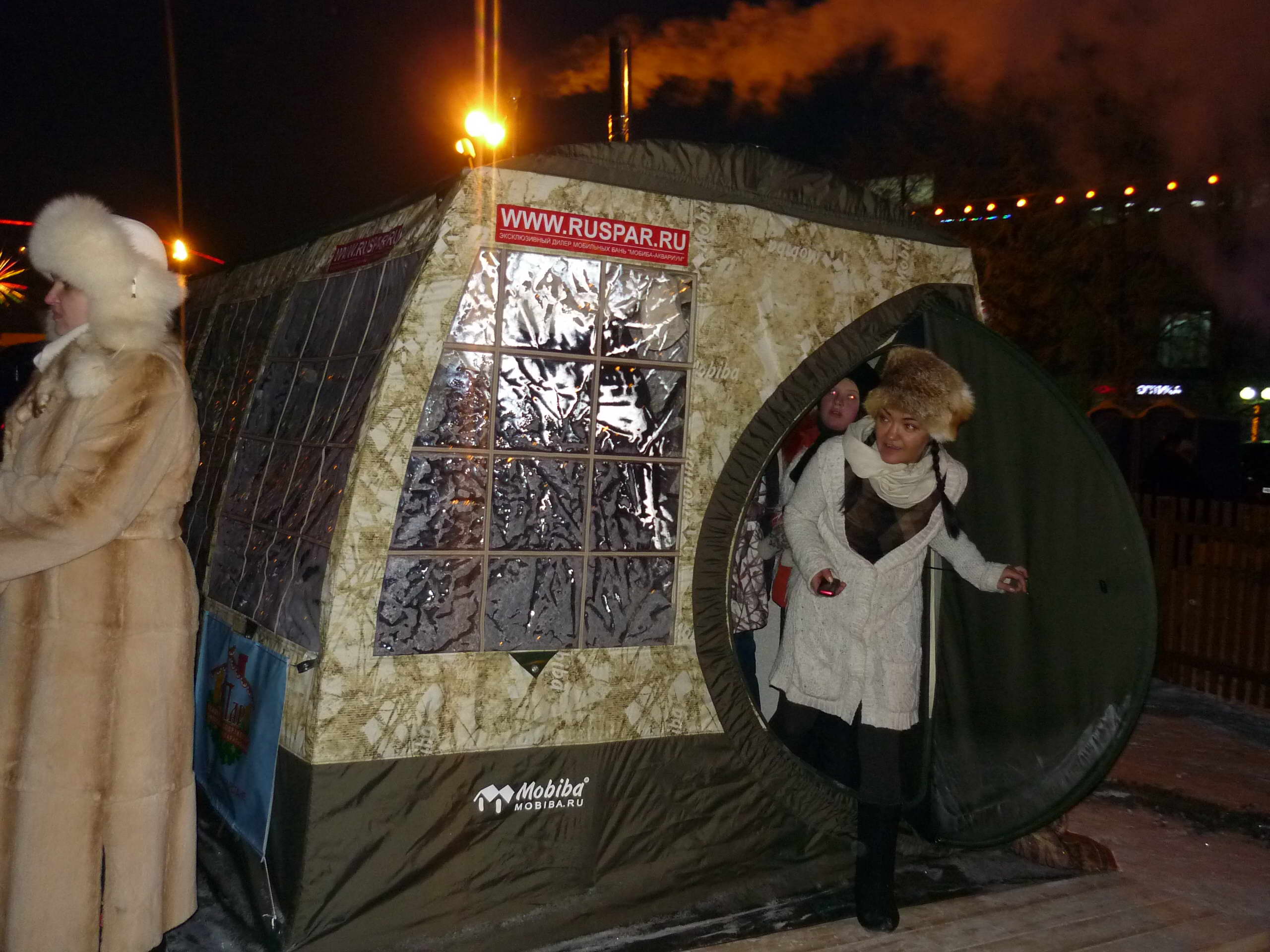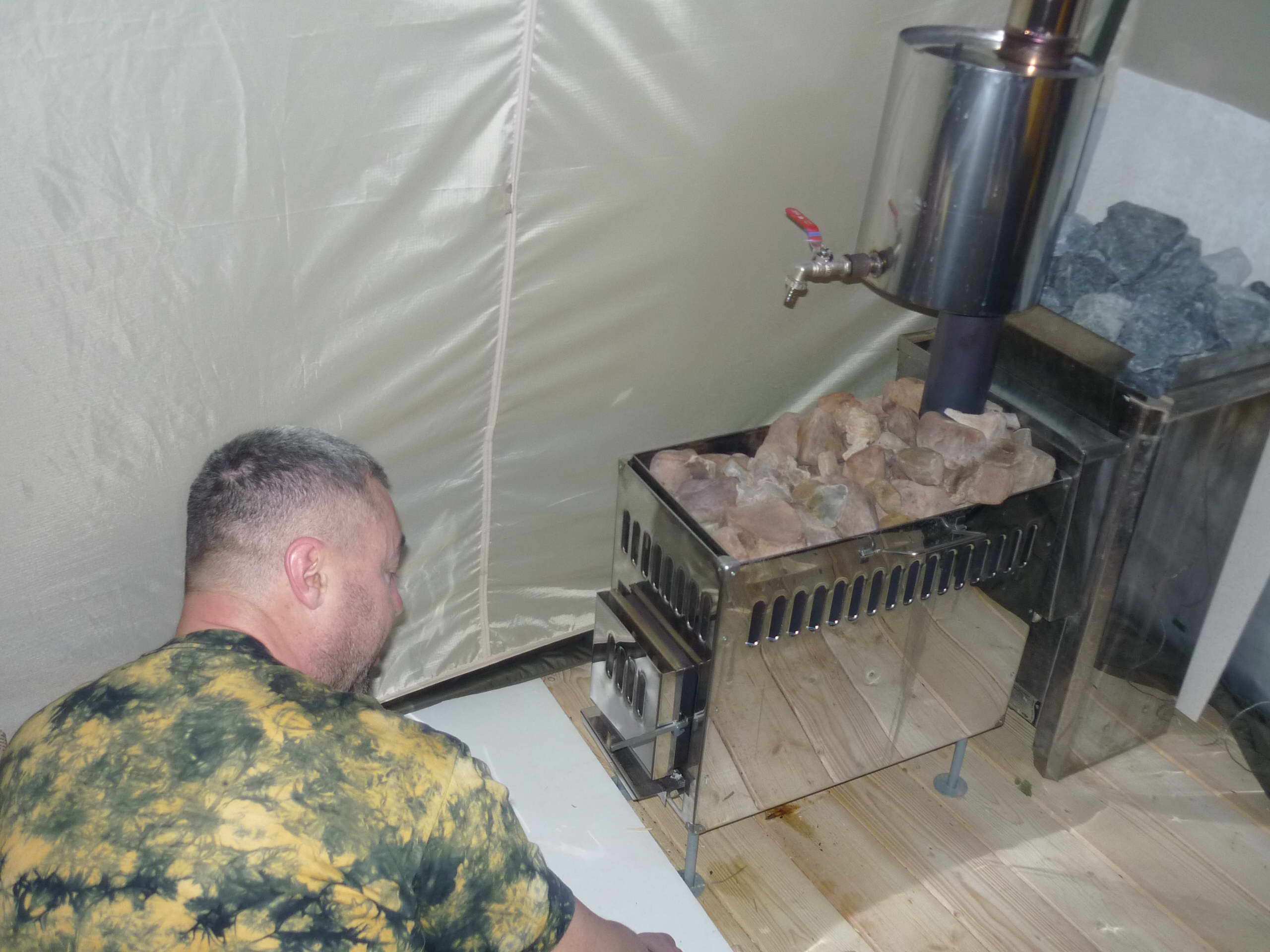 - Подобные бани уже не раз опробованы в походных условиях, - говорит серебряный призер чемпионата России по банному мастерству Ильгиз Лутфуллин. - А вот именно эту модель специально изготовили для нас - это зимний вариант с двойными стенками.