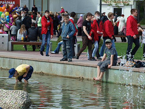 Сегодня состоялось открытие сезона работы фонтанов. На бульваре Энтузиастов организовали концерт, молодежные организации раздавали георгиевские ленточки и дарили объятия прохожим. Главные ценители начала сезона, мальчишки, несмотря на прохладную погоду, успели оценить воду в фонтанах. Получился настоящий Первомай: с солнцем, улыбками, шарами.