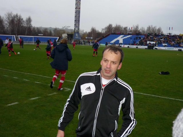После первого тайма команда «Росич-Старко» переигрывает челнинское начальство со счетом 3:2. На стадионе собралось около пяти тысяч зрителей, в основном школьники и студенты. В первые минуты игры группа из пяти девушек попыталась покинуть стадион, но сделать им этого не дали. «Нельзя так рано выходить, - заявили контролеры. – Будете спорить, запишем всех пофамильно».