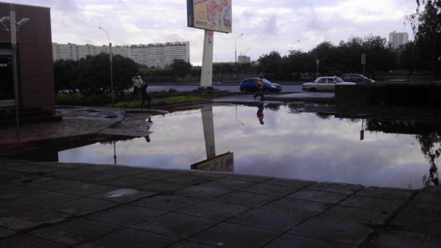 Из письма читателя "Челны ЛТД": - Такой вот ужас творится немалое уже время на остановке "Райисполком". Даже на протяжении долгих жарких дней лужа не в силах была высохнуть! А после дождя можно и загадку задавать "Не пройти, не проехать, не проплыть". Ответ: лужа у "Райисполкома".