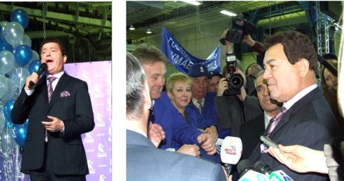 До Путина на митинге выступил Иосиф Кобзон. Пел живьем, только музыка шла минусовкой. Рассказал, что выступал на «КАМАЗе» в 1969 году, когда начиналось строительство. Народ песни Кобзона слушал, но поглядывал по сторонам – всем хотелось увидеть, как войдет премьер-министр. Артист не обиделся: «Я знаю, кого вы ждете. Считайте, что я бэк-вокалист вашего премьера».