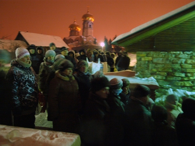 Несколько тысяч жителей города Набережные Челны сегодня ночью пришли к Свято-Вознесенскому собору. Еще шла праздничная служба, а к роднику стояла очередь, и в водоеме уже купались. Крестный ход и Великое освящение воды ненадолго прервали купание и набор воды. Когда священники, окропив собравшихся, двинулись обратно, толпа с пустыми баллонами для крещенской воды вновь сомкнулась, нарушив прежний порядок, и многие заволновались: «В очередь, в очередь вставайте!». Для молодежи звон колоколов стал сигналом к погружению в освященную воду. Начались массовые погружения, заплывы и фотосессии в роднике. В три часа ночи в Боровецком было еще многолюдно. «Пока идут массово, будем здесь», - пообещали полицейские. Сотрудники МЧС остались у родника до утра. Днем 19 января на территории храма, возможно, появится купель-бассейн с подогреваемой водой. Установить ее до праздника не получилось из-за того, что на морозе бассейн лопнул. Его заклеили, но это временная мера, скорее всего, будет приобретен новый бассейн. Священнослужители напоминают, что крещенскую воду можно набирать в течение трех дней, а купание не является обязательным и не относится к церковным таинствам и не очищает человека от грехов.