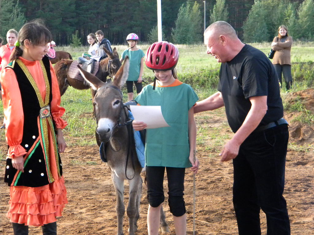 После основных гонок состоялись забеги на ослах. Эти старты пользуются едва ли не большей популярностью у зрителей, чем скачки на лошадях. По драматизму эта гонка была одной из самых интересных на соревнованиях. Лидировавшая большую часть дистанции Алина Сидорова упустила победу – своенравный ослик Мамонт буквально встал у финишной черты, позволив остальным соперниками обогнать себя. Победила же Полина Фалдина на Молнии. Финальным аккордом соревнований стала джигитовка. Наездники показывали гимнастические и акробатические трюки на лошадях. Переходящий кубок по итогам турнира получило скаковое отделение тренера-преподавателя Радика Фатхудинова.