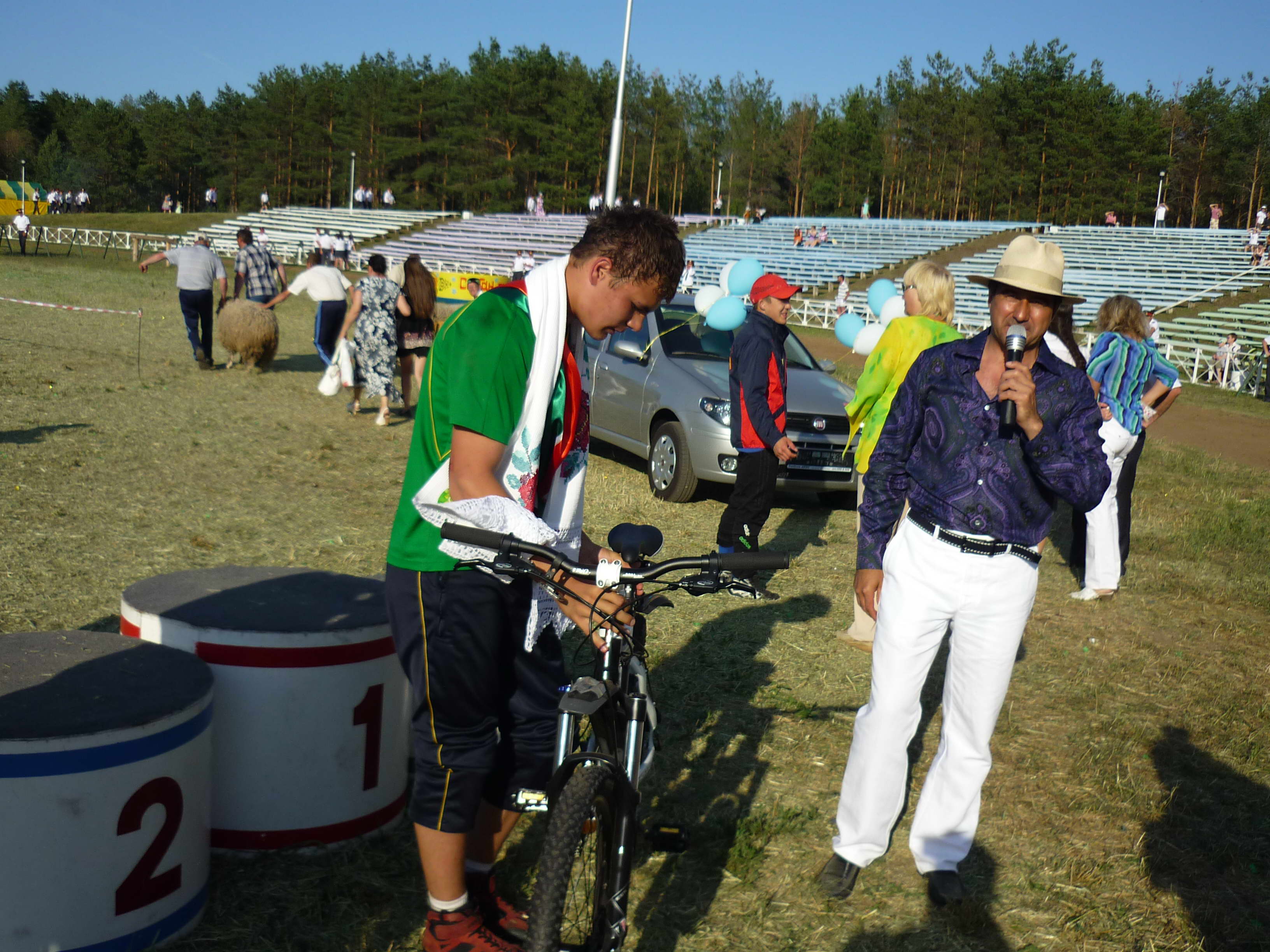 Победителю среди юношей Азату Кавиеву вручили барана и велосипед.
